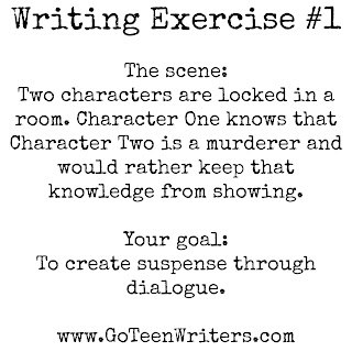 Here's how it'll work. Most Fridays, I'll post a writing exercise here on Go Teen Writers. When you participate, leaving your work in the comments section, your name will be entered into a drawing. Every quarter (or thereabout) we'll draw names and each winner will get to submit one writing-related question for the three of us to answer. Steph, Jill and I will then stage a panel and film our answers and post the video here on the blog!